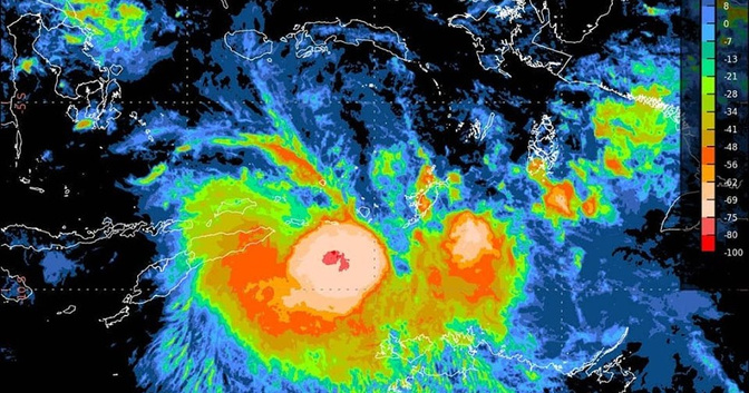 2) atmosfer yang mendingin dengan cepat seiring ketinggian vertikal, mengubah energi panas yang tersimpan dari air laut yang hangat menjadi aktivitas badai petir yang menjadi bahan bakar sistem tropis yang sedang berkembang.